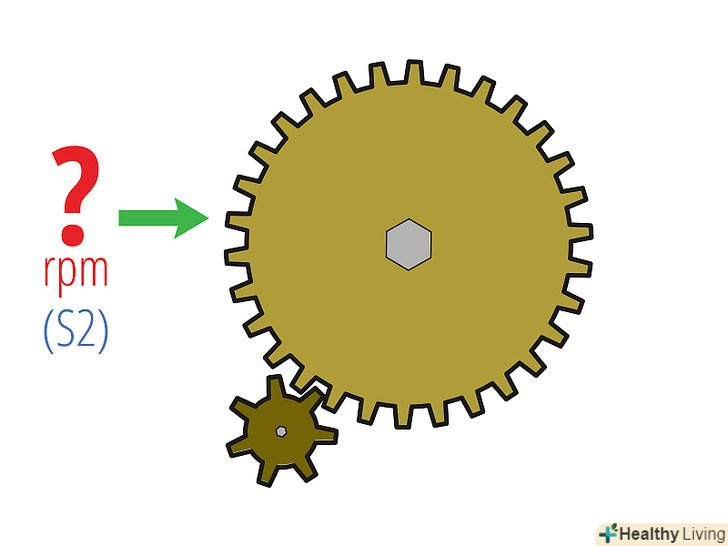 Підставте відповідні значення в формулу: S1 X T1 = S2 X T2, де S1, Т1 — частота обертання і кількість зубів провідної шестерні; S2, Т2 — частота обертання і кількість зубів веденої шестерні.- У нашому прикладі потрібно знайти S2, але за цією формулою ви можете знайти будь-яку змінну.