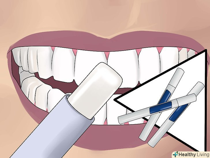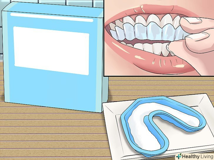 Спробуйте використовувати капу з гелем для відбілювання зубів.є деякі свідчення того, що спеціальні капи для зубів, наповнені гелем з 3% вмістом перекису водню, дозволяють дуже добре відбілити зуби.[8] подібну капу можна придбати як самостійно, так і за приписом стоматолога.[9]- Капи можуть бути як вже заповнені гелем з перекисом, так і вимагати самостійного заповнення. Знайте, що капи виробляються таким чином, щоб підходити для зубів більшості людей, але немає ніякої гарантії, що вони підійдуть саме вам.[10]
