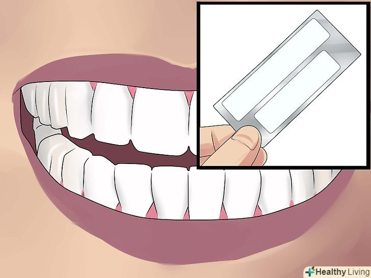 Скористайтеся отбеливающими смужками для зубів.застосування відбілюючих смужок схоже із застосуванням кап, проте перші більш гнучкі і вже просякнуті розчином з перекисом водню. До використання смужок для відбілювання зубів можна вдаватися тоді, коли потрібно універсальний засіб відбілювання, що дозволяє не зачіпати ясна, які можуть бути дуже чутливими до перекису водню.- Знайте, що смужки для відбілювання зубів настільки ж безпечні, як і капи, і дозволяють домогтися кращого відбілювання, ніж при звичайному чищенні зубів.[15]