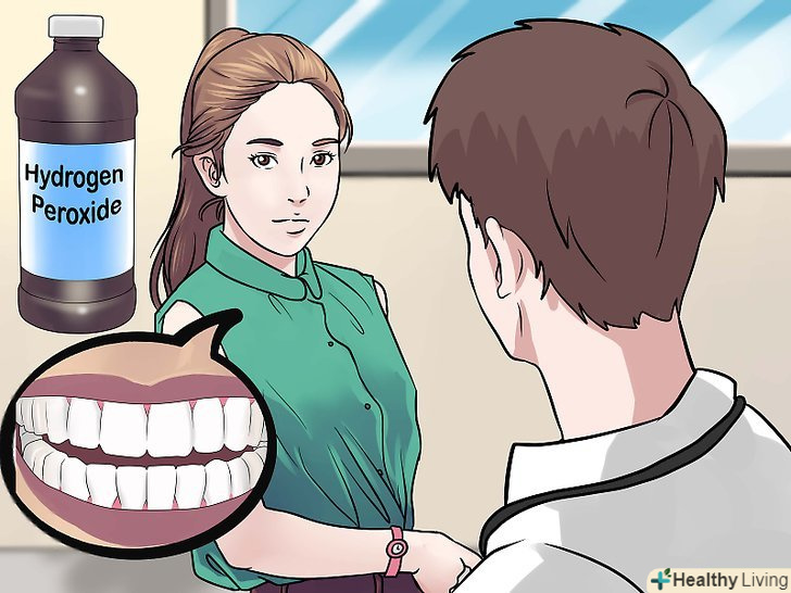 Ознайомтеся з ризиками застосування перекису водню.існують різні погляди на відбілювання зубів домашніми засобами з перекисом водню.[22] застосування неперевірених складів з перекисом може викликати чутливість зубів і порожнини рота, а також зробити негативний вплив на стан ясен.[23]- Проконсультуйтеся з дантистом, перш ніж самостійно вибілювати зуби перекисом водню або будь-якими іншими самостійно приготованими засобами з нею в складі.[24]