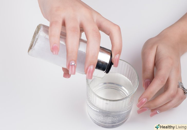 Прополощіть рот солоною водою.перш ніж наносити гвоздикове масло на ясна, необхідно прополоскати рот теплим водним розчином солі. Таким чином ви очистите ротову порожнину, і масло ефективніше подіє на ясна.[12]- Якщо ви використовуєте гвоздичне масло як засіб від комарів, його потрібно нанести на шкіру, тому немає сенсу обполіскувати рот. Нанесіть масло на шкіру-це дозволить відлякати комарів аж до п'яти годин.[13]