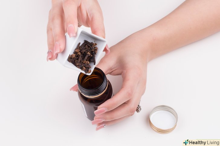 Гвоздика містить різні корисні речовини, в тому числі евгенол.[1] гвоздична олія є натуральним засобом, який можна наносити безпосередньо на ясна, щоб полегшити біль після лікування або видалення зуба (при так званій «сухий лунці»). Крім того, гвоздиковим маслом можна змащувати порожнину рота, щоб тимчасово зняти зубний біль або запалення горла. Вважається, що це масло можна наносити і на шкіру. Однак не наносите гвоздикове масло на одне і те ж місце занадто часто, так як це може привести до пошкодження ясен, шкіри і слизової оболонки.[2] Обов'язково проконсультуйтеся з лікарем або стоматологом, перш ніж використовувати гвоздикове масло.
