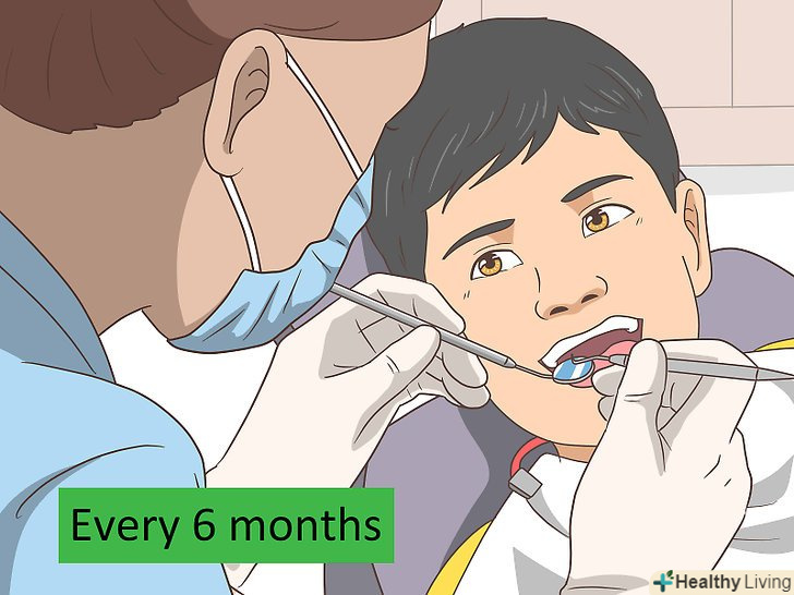 Відвідуйте стоматолога раз на півроку для очищення зубного каменю.не пропускайте прийоми у стоматолога, навіть якщо ви дотримуєтеся хорошу гігієну порожнини рота. Якщо зубний камінь з'явився, його практично неможливо прибрати самому, так що раз на півроку вам знадобиться професійна чистка.[16]- Зубний камінь не тільки неприємно виглядає, але і розглядається організмом як інфекція, яку він може атакувати. Тривала присутність зубного каменю може послабити імунітет і привести до інших проблем зі здоров'ям, включаючи інсульт, хвороби серця і недоумство.[17]