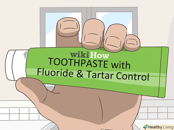 Користуйтеся зубною пастою з фтором і від зубного каменю.Фтор-це мінерал, який зміцнює зубну емаль і запобігає пошкодження кислотою. Ваша зубна паста обов'язково повинна містити фтор, навіть якщо ви живете в місцевості, де фтор додають в питну воду. Також пошукайте зубну пасту проти зубного каменю. У них містяться хімічні сполуки або антибіотики, які руйнують наліт, тим самим запобігаючи утворенню зубного каменю.[5]
