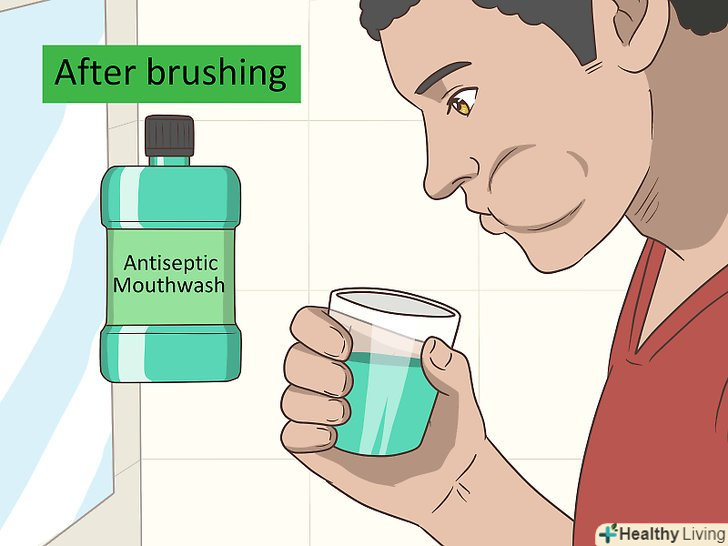 Полощіть рот антисептичним засобом для полоскання рота після чищення зубів.антисептичні засоби для полоскання рота дозволяють вбити бактерії, в результаті скупчення яких утворюється наліт. Таким чином, нальоту буде важче утворитися і перетворитися в зубний камінь.[7]