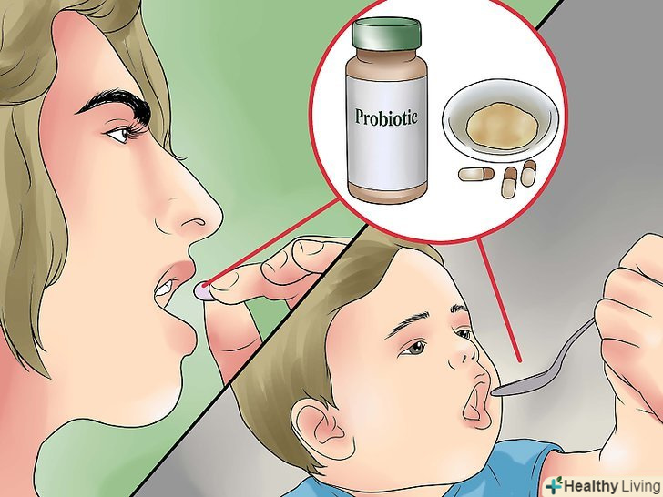 Приймайте пробіотики.прийом пробіотиків (корисних бактерій) може допомогти впоратися з молочницею, так як корисні бактерії витіснять розмножився грибок і відновлять нормальний баланс мікрофлори ротової порожнини. Денна доза повинна бути не менше 5 млрд.КУО (колонієутворюючих одиниць). Приймати препарат слід два-три в день. [12]- Якщо стоматит у маленької дитини, ви можете відкрити капсулу і висипати її вміст в їжу дитини або зробити пасту з порошку капсули і намазати їй ротову порожнину дитини.