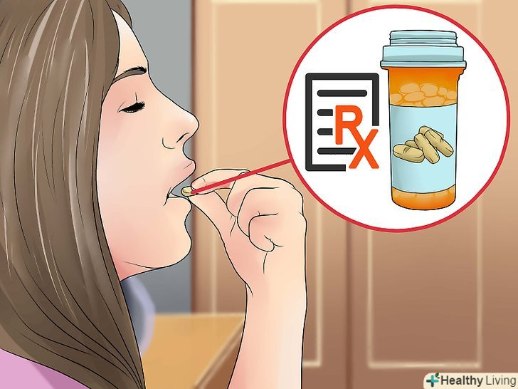 Приймайте препарати, що відпускаються за рецептом.якщо полоскання або таблетки для розсмоктування не дадуть позитивного результату або якщо інфекція поширилася за межі ротової порожнини, вам доведеться приймати таблетки, щоб впоратися з інфекцією. Як правило, лікарі призначають флуконазол або препарат групи ехінокандинів для перорального прийому. Залежно від штаму грибів роду Candida і від індивідуальних особливостей пацієнта (загальне самопочуття, супутні захворювання, алергії та інших фактори), лікар підбере необхідне лікування.[6]- Як правило, для прийому всередину призначають клотримазол або флуконазол («Дифлюкан», «Флюкостат»).[7]