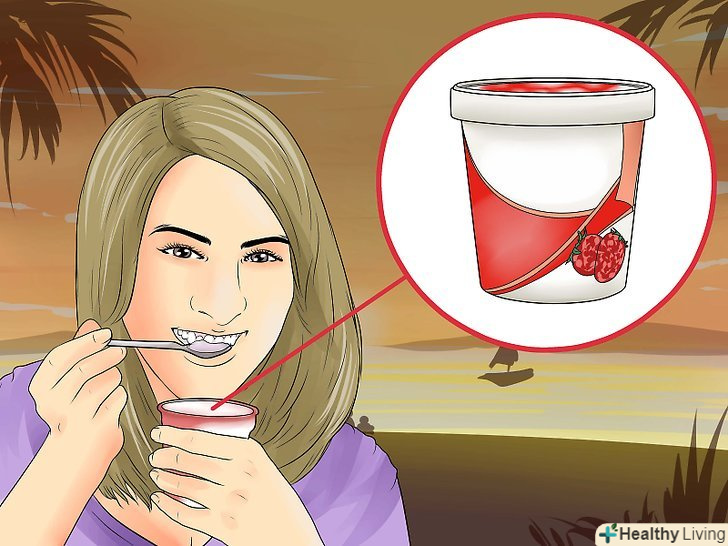 - Їжте йогурт один або два рази на день. Робіть це дуже повільно. Покладіть ложку йогурту в рот, як можна ближче до ураженого місця і потримайте його протягом 30 секунд у роті, перш ніж проковтнути.[13]