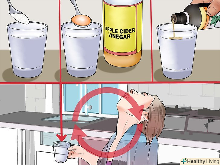 Зробіть домашній розчин для полоскання.ви можете спробувати кілька різних видів полоскань, які дозволять вам позбутися від молочниці ротової порожнини. Полощіть рот від двох до чотирьох разів на день, а потім виплюньте рідину. Для приготування розчину використовуйте такі засоби: