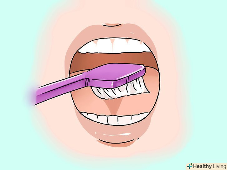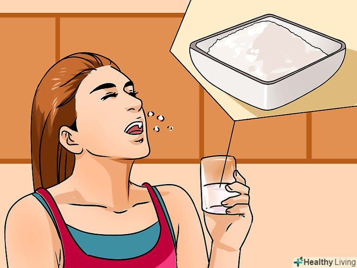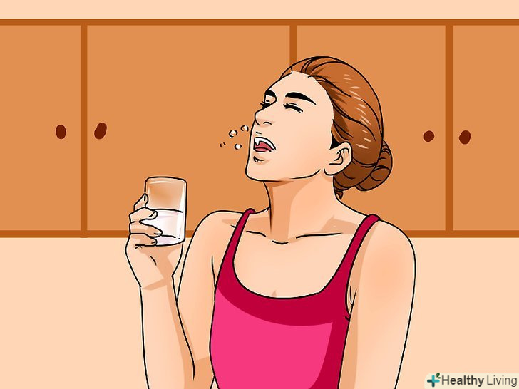 Дезінфікуйте ротову порожнину за допомогою антисептичного засобу для полоскання рота або сольового розчину.і хоча найчастіше такі рідини не дуже приємні на смак, вони відмінно знищують розмножуються в роті бактерії.- Щоб приготувати сольовий розчин, розчиніть 1/4–1/2 (1,25-2,5 г) чайної ложки солі в склянці теплої води.[7]