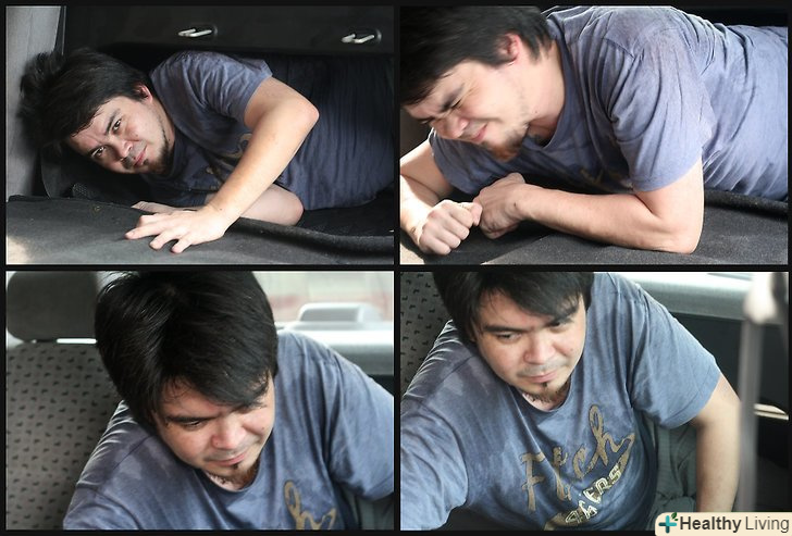 Якщо водій вийде з автомобіля, вилізьте через заднє сидіння.у деяких автомобілях задні сидіння складаються вниз, щоб відкрити доступ до багажника. Як правило, важелі для цих місць розташовуються всередині автомобіля, але один з них може бути в багажнику. Якщо ні, спробуйте штовхнути, вдарити або зрушити сидіння вниз, а потім вилізти.[2] якщо вас викрали, переконайтеся, що злочинця немає в машині або поруч з нею, інакше у вас не вирватися на свободу, склавши заднє сидіння прямо під носом у викрадача.