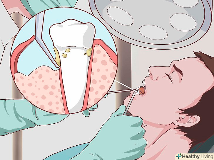 Відвідайте стоматолога для огляду.лікар огляне ваші зуби і ясна, зробить рентгенівський знімок і по глибині пародонтального кишені оцінить ступінь захворювання. Після цього він призначить дату глибокого чищення і дасть рекомендації по догляду за порожниною рота в домашніх умовах до вашого наступного візиту до нього. Слід неухильно дотримуватися приписів лікаря.- Стоматолог може також направити вас до пародонтолога-фахівця із захворювань ясен та інших навколозубних тканин.[2]
