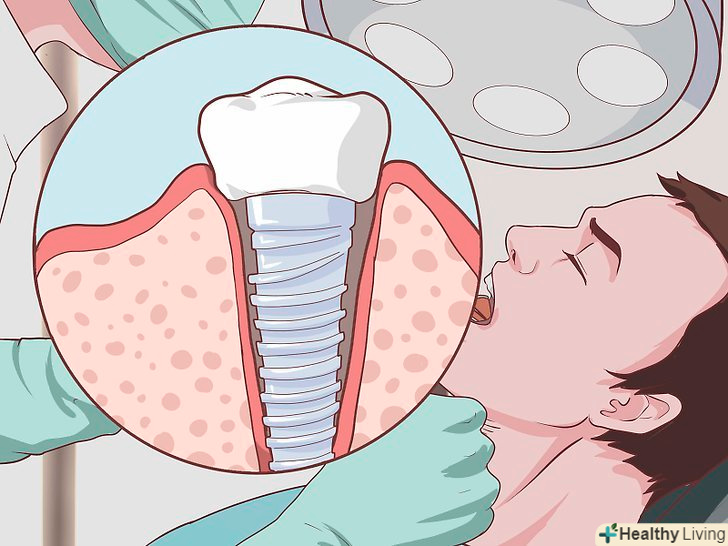 Подумайте про те, щоб поставити зубні імплантати.іноді пародонтит може призвести до втрати одного або декількох зубів. У таких випадках можна замінити втрачені зуби високоякісними зубними імплантатами. Порадьтеся зі стоматологом або пародонтологом і з'ясуйте, чи підходять вам зубні імплантати, враховуючи вашу історію хвороби та інші можливі проблеми зі здоров'ям.