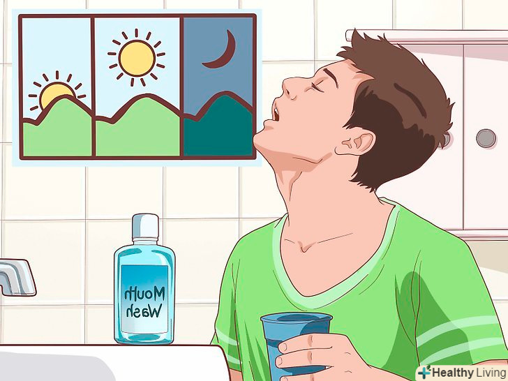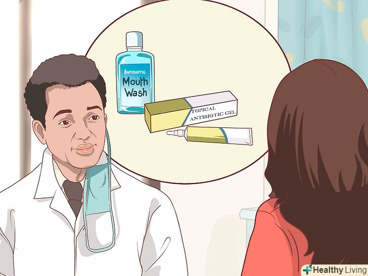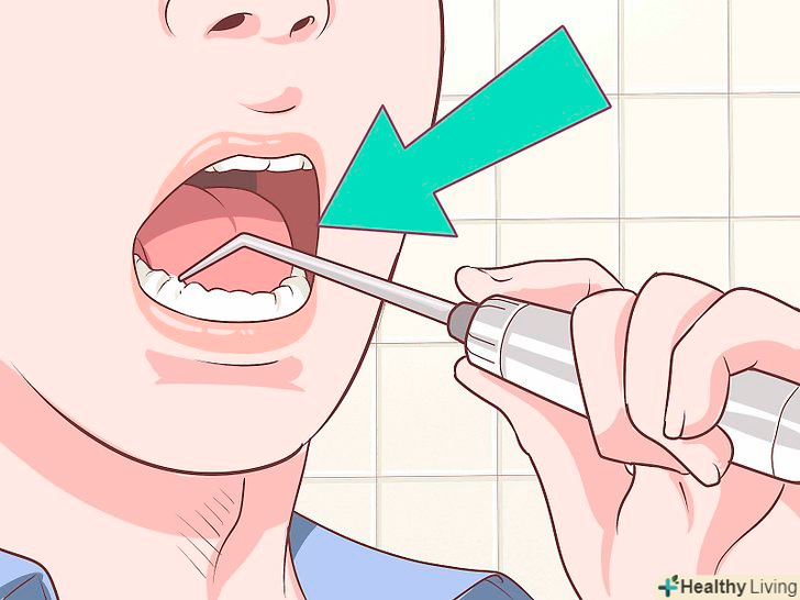 Полощіть рот антимікробним засобом 2-3 рази на день.це допоможе зменшити кількість бактерій в порожнині рота і запобігти інфекції. Якщо Ваш стоматолог випише вам рецептурне засіб, використовуйте його, або придбайте відпускається без рецепта рідина для полоскання рота. Обов'язково вивчіть етикетку і виберіть протимікробний засіб.- Можна також заливати рідину для полоскання рота в іригатор і мити ясна і зуби під тиском.
