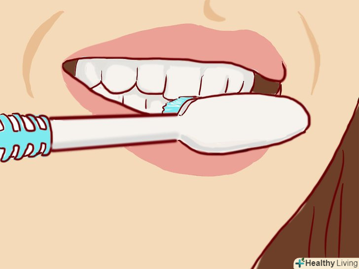 Використовуйте відбілюючу зубну пасту.сходіть в аптеку і попросіть фармацевта підібрати вам зубну пасту, призначену спеціально для відбілювання зубів. Подібна продукція зробить плями на поверхні зубів (наприклад, від куріння) менш помітними. Часто в них містяться активні речовини (часто хімічні), які розчиняють пігментні плями, видаляючи темний наліт з зубів..[1]- Зверніться за рекомендацією до стоматолога. Будьте готові до того, що певні види паст підвищують чутливість зубів.