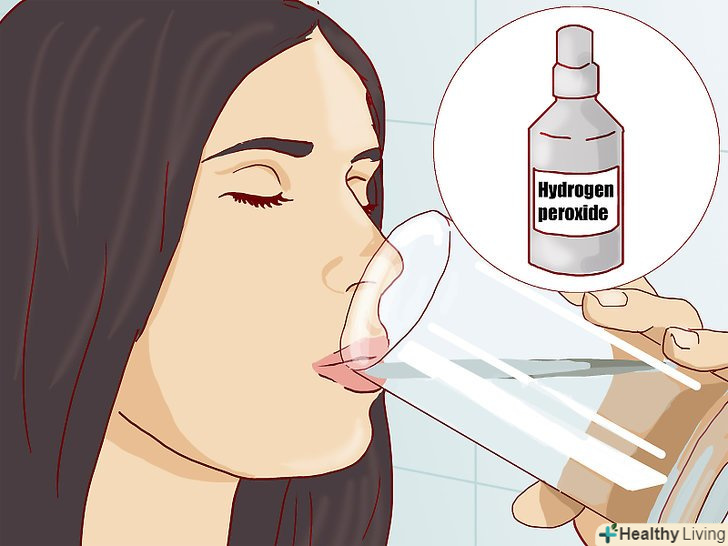 Прополощіть рот перекисом водню.ще один поширений побутовий засіб, який може зробити ваші зуби світліше, — це перекис водню. Розбавте невелику кількість (менше 30 мл) кошти з водою і прополощіть рот. Через кілька секунд сплюньте і ретельно прополощіть рот водою. Даний розчин є простим способом освітлити жовті зуби.[5]- Ще один метод для створення блискучої посмішки-це утримати спеціальний ополіскувач в роті і почати чистити зуби, орудуючи щіткою через зімкнуті губи. Інакше кажучи, почистіть зуби ополіскувачем для порожнини рота. Кінцевий результат може вас здивувати.