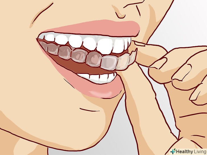 Спробуйте хімічне відбілювання.в цьому випадку стоматолог завдасть вам на зуби відбілюючу речовину. Можливо, вас відправлять додому з зубною капою і забезпечать відбілюючим гелем. Спеціаліст предпише вам носити цю капу певну кількість часу кожен день. Або ж процедура по відбілюванню буде повністю проведена в кабінеті лікаря. У будь-якому випадку, це не боляче.[9]- Знайте, на що ви йдете. Один з найпоширеніших побічних ефектів — це підвищення чутливості зубів. Запитайте свого стоматолога, чи можливий такий результат.[10] крім того, в деяких випадках, в залежності від прикусу або концентрації відбілюючого речовини, структура зубів може ослабнути, і на них можуть з'явитися маленькі тріщини або навіть відколи.