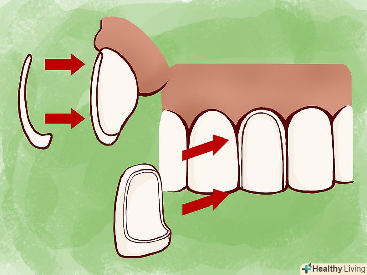 Подумайте про вставлення вінірів.порцелянові ламінатні вініри-це пластинки товщиною в паперовий лист, які виготовляють з порцеляни і створюють для того, щоб надати зубам здоровий, сяючий вигляд. Стоматолог видалить трохи природної емалі з зубів, потім завдасть шар клейкого матеріалу, а на нього вже самі вініри. Вініри вважаються найефективнішим способом домогтися білосніжною і сліпучої посмішки. Крім того, вони стійкі до появи плям. Запитайте у Вашого лікаря, чи підходить вам цей варіант.[11]- Також є види вінірів, які не потребують підготовки. Тобто перед їх нанесенням стоматолога не потрібно видаляти емаль з зубів. Однак, цей варіант підходить не всім, так що обговоріть всі подробиці з фахівцем.