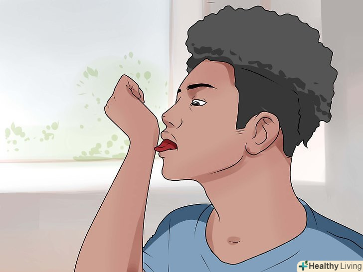 Лизніть внутрішню сторону свого зап'ястя.відійдіть убік і лизніть внутрішню частину зап'ястя. Оскільки зап'ястя не стикається з речами, ви зможете легко оцінити запах з рота. Зачекайте, поки слина висохне. Після цього понюхайте зап'ясті. Це один з найбільш точних способів визначення запаху.[12]