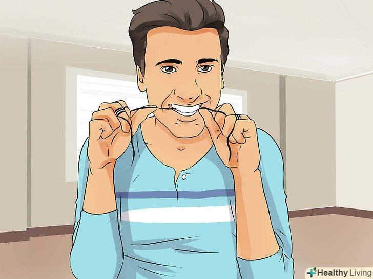 Користуйтеся зубною ниткою.на додаток до зубної щітки або замість неї, ви можете використовувати зубну нитку. Придбайте зубну нитку з ароматом м'яти. Свіжий подих вам буде забезпечено.- Стоматологи рекомендують користуватися зубною ниткою після кожного прийому їжі. Зубна нитка дозволяє очистити проміжки між зубами, в які могла потрапити їжа. Якщо ви не готові так часто користуватися зубною ниткою, робіть це принаймні один раз в день, бажано перед сном. Завдяки цьому значно зменшиться неприємний запах з рота.[2]