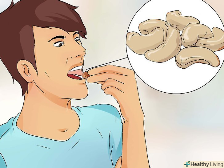 Пожуйте горіхи і насіння.горіхи мають виражений аромат. Крім того, їх абразивна текстура допомагає видалити залишки їжі, що залишилися на мові, яснах або в зубах. Кріп і насіння фенхелю відмінно маскують запах. Насіння анісу мають антисептичні властивості і прибирають неприємний запах з рота.[7]