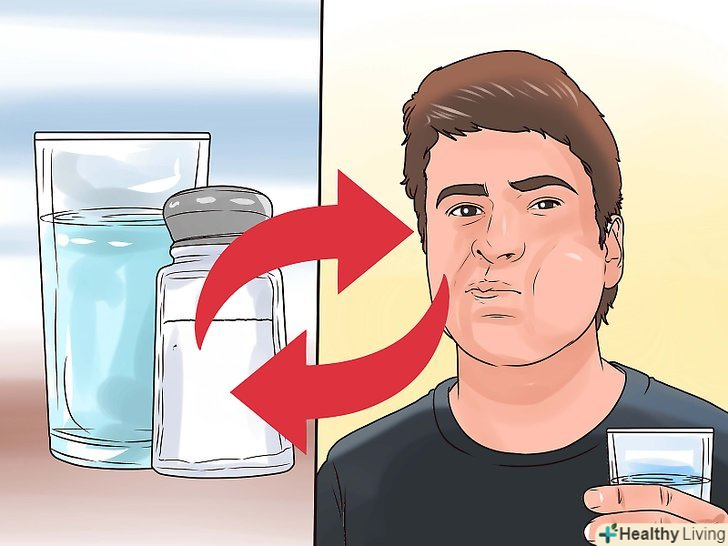Зробіть сольовий розчин для полоскання.полоскання солоною водою дуже корисні і ефективні при очищенні лунки і видаленні залишків їжі, крім того, вони дозволяють зменшити біль і запобігти запалення.- Змішайте 0,2 л води і 1/4 чайної ложки солі.