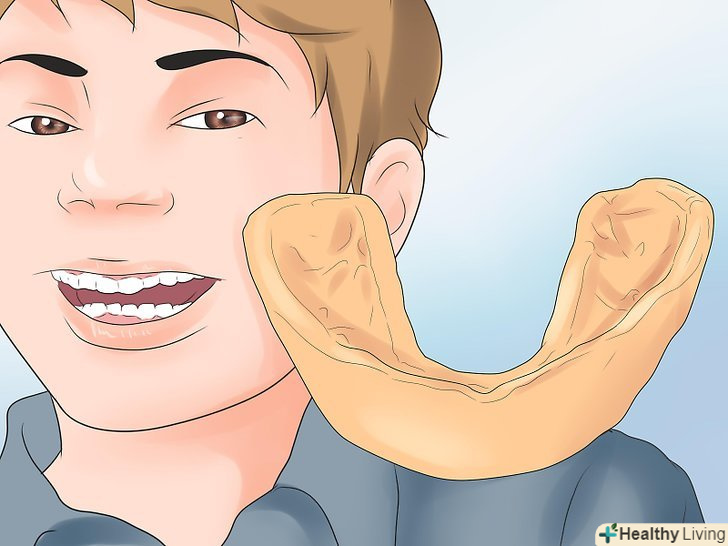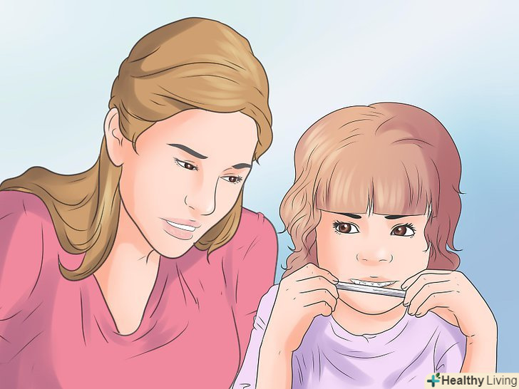 Купуйте спеціальну шину для вашої дитини.Стоматолог може порекомендувати використовувати спеціальну шину, щоб захистити зуби вашої дитини. Коли ваша дитина скрегоче зубами, він може пошкодити їх емаль. Шина виготовлена з силікону і захищає зуби, запобігаючи тертю верхніх і нижніх корінних зубів один об одного.[6]- Помістіть шину в воду, щоб тримати її в чистоті протягом дня. Чистіть її зубною щіткою кожен день або через день.