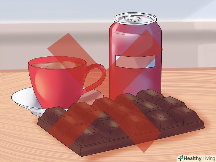 Зменшіть кількість кофеїну, який вживає ваша дитина.кофеїн може змінити режим сну і неспання вашої дитини, тому що він блокує утворення хімічної речовини аденозин. Це хімічна речовина допомагає відчувати себе спокійніше, що, в свою чергу, покращує сон. Намагайтеся не давати дитині кофеїновмісних продуктів, таких як:- Газована вода.