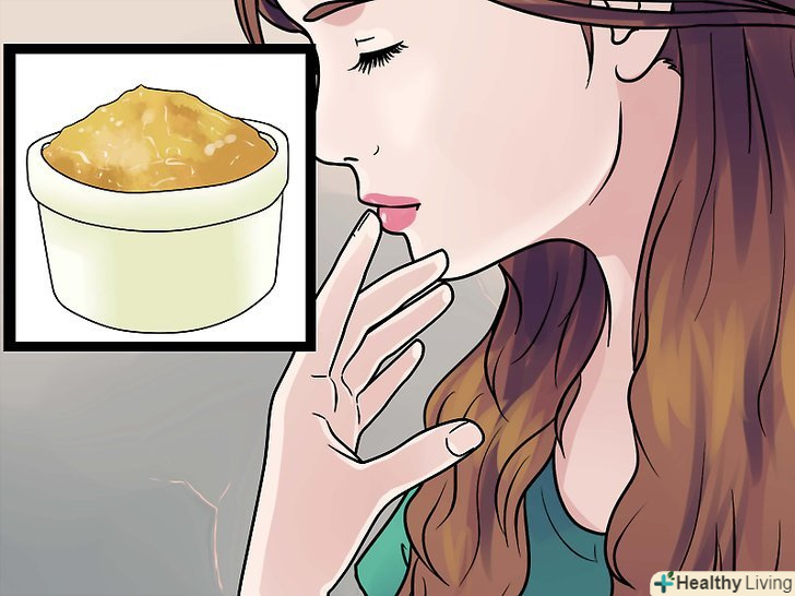 Нанесіть на розпухлу губу мед.мед - це натуральне загоює засіб. Також він має антибактеріальні властивості. Його можна наносити на розпухлу губу разом з іншими лікувальними засобами.[6]- Намажте розпухлу губу медом і залиште на 10-15 хвилин.