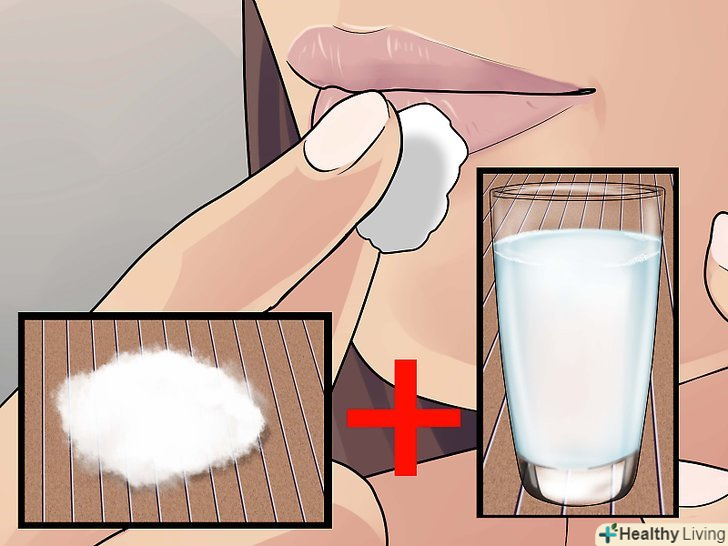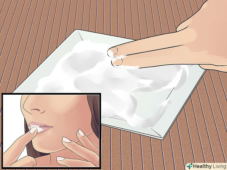 Нанесіть на розпухлу губу пасту з харчової соди.харчова сода допоможе зменшити набряк, біль і запалення, пов'язані з розпухлою губою.- Зробіть пасту, змішавши харчову соду з водою.