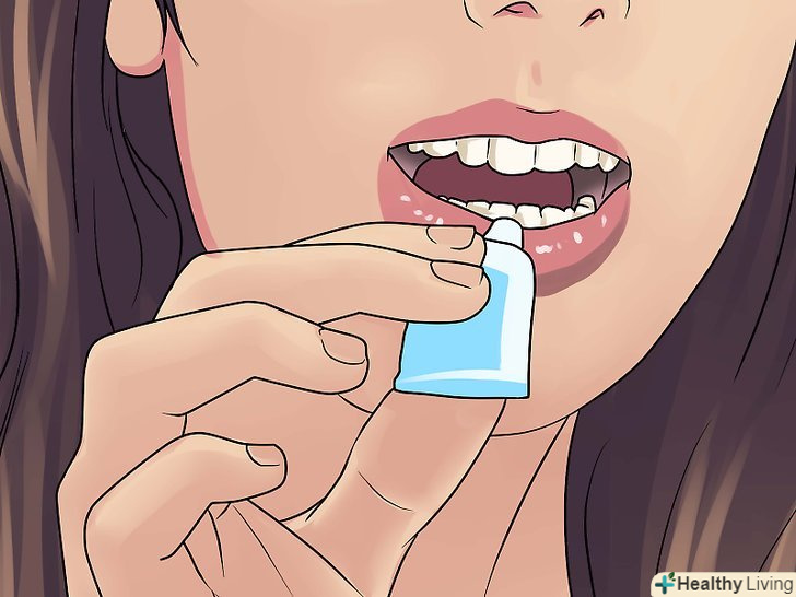 Прикладіть лід.помітивши набряк, прикладіть до губи холодний компрес. Набряк з'являється через скупчення рідини. Холодний компрес допоможе зменшити набряк, запалення і больові відчуття, так як він уповільнює кровообіг.[1]- Загорніть кубики льоду в тканинну серветку або паперовий рушник. Замість льоду можете використовувати пакетик з замороженим горошком або просто охолоджену ложку.