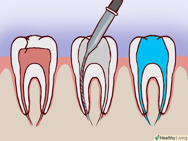 Лікування кореневого каналу.якщо зуб пошкоджений настільки сильно, що оголилися пульпа і зубний нерв, щоб зберегти його, стоматолог може обробити кореневий канал. Лікар ретельно почистить і продезінфікує кореневий канал і запломбує його, що допоможе врятувати зуб від повного руйнування.[18][19]- Якщо у вас оголився зубний канал, після того, як стоматолог обробить і захистить його, він, можливо, поставить на зуб коронку.