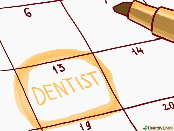Дбайте про свої зуби.в результаті неправильного або недостатнього догляду зуби слабшають і більш схильні до різних пошкоджень. На щастя, правильна гігієна зубів і порожнини рота цілком залежить від вас самих. Стежачи за чистотою зубів і порожнини рота і регулярно відвідуючи стоматолога, ви збережете свої зуби здоровими і уникнете їх псування і руйнування.[24]- Про те, як правильно чистити зуби, ви дізнаєтеся, прочитавши статтюяк чистити зуби.
