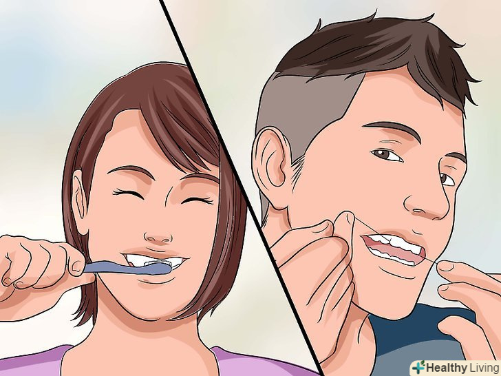 Чистіть зуби щіткою і ниткою кожен день, в тому числі після їжі.це дозволить вам зберегти здоров'я зубів, пломб і ясен. Якщо в Роті завжди буде чисто, ви зможете уникнути появи плям на зубах і ерозії емалі.[32]- Чистіть зуби щіткою і ниткою після їжі, якщо у вас є така можливість. Якщо між зубів залишається їжа, це створює небезпечну для емалі середу. Якщо у вас немає під рукою щітки, пожуйте жувальну гумку.[33]
