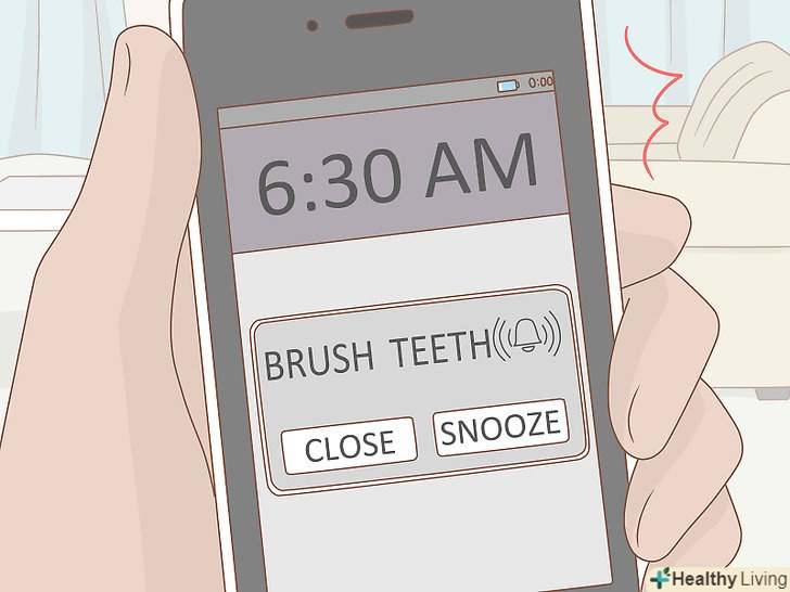 Встановіть будильник.встановіть будильник, який буде нагадувати вам про необхідність чистити зуби кожен день. Вибирайте такий час, коли ви вже напевно будете вдома, щоб у вас не залишилося відмовок.- Будильник може стати запасним планом. Наприклад, якщо сьогодні ви вирішили не приймати душ, то будильник все одно нагадає вам про необхідність почистити зуби.