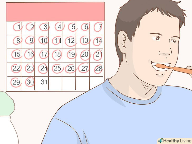 Визначте, скільки разів на день ви будете чистити зуби.Стоматологи рекомендують чистити зуби два рази на день, а іноді і частіше. Але якщо ви забуваєте чистити їх навіть один раз в день, то почніть з малого. Згодом догляд за зубами стане звичкою зі своїми перевагами, завдяки чому ви перестанете забувати чистити їх регулярно.[1]