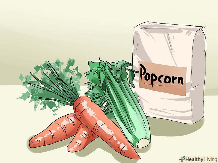Додайте в свій раціон продукти, які мають очищує дією. Подібні продукти очищають зуби природним шляхом. Очищенню зубів і порожнини рота сприяють, наприклад, яблука: вони досить тверді і при пережовуванні видаляють зубний наліт. Намагайтеся з'їдати хоча б по яблуку в день.[12]- До продуктів, що очищають зуби, відносяться сирі селера і морква, а також попкорн.