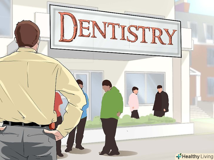 Виберіть хорошого стоматолога.оскільки ви будете регулярно відвідувати стоматолога, виберіть лікаря, з яким вам комфортно. Розпитайте друзів і родичів, чи немає у них на прикметі хорошого стоматолога. Можна також порадитися зі своїм сімейним лікарем.[6]- При виборі зубного лікаря врахуйте його місцезнаходження: бажано, щоб стоматологічний кабінет розташовувався неподалік від вашого будинку або місця роботи. В цьому випадку вам буде зручніше відвідувати стоматолога.