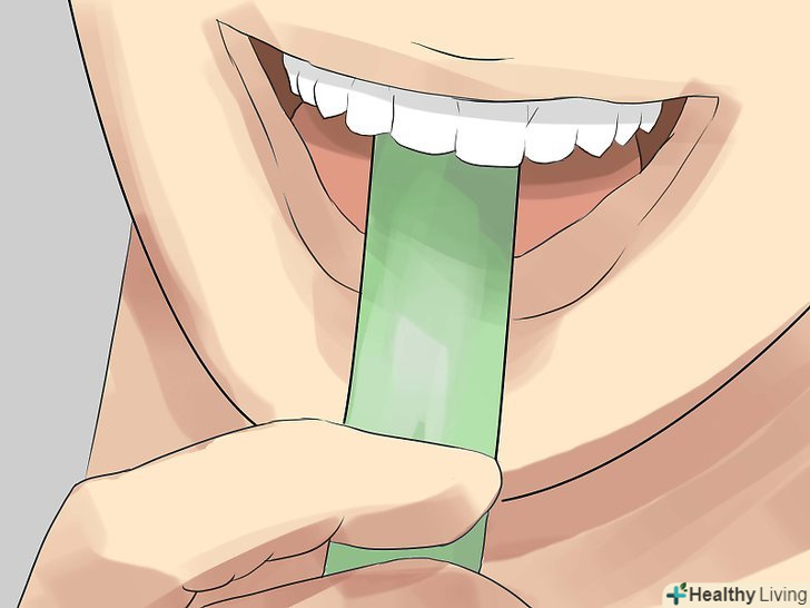 Жуйте жувальну гумку для свіжості дихання. Шукайте гумку з ксилітом. Бактерії в роті будуть приставати до цього цукрозамінника, а не до зубів. Жувальна гумка сприяє виробленню слини, запобігаючи сухість у роті і видаляючи бактерії і частинки їжі.[28] переконайтеся, що вона без цукру.