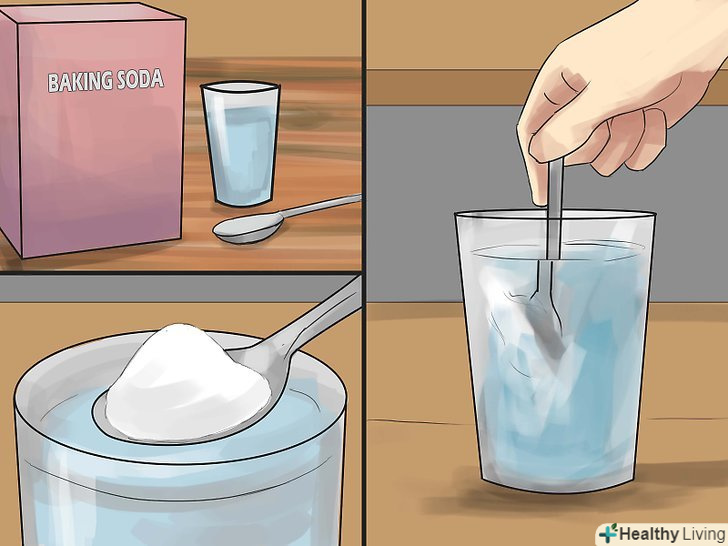 Полощіть рот харчовою содою.харчова сода є природним освіжувачем дихання. Додайте чайну ложку соди в склянку води і прополощіть нею рот.[34]