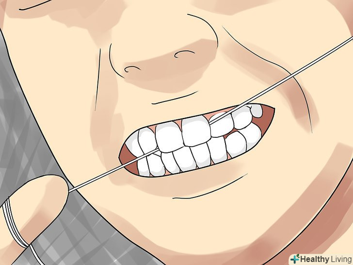 Використовуйте зубну нитку принаймні один раз на день.зубна нитка допомагає видалити їжу в тих місцях, до яких не може дістати зубна щітка, а також видаляє зубний наліт, шар бактерій, що утворюється навколо зубів. Використання зубної нитки також допомагає запобігти пародонтит (хвороба ясен), який є ще однією причиною неприємного запаху з рота.[5]