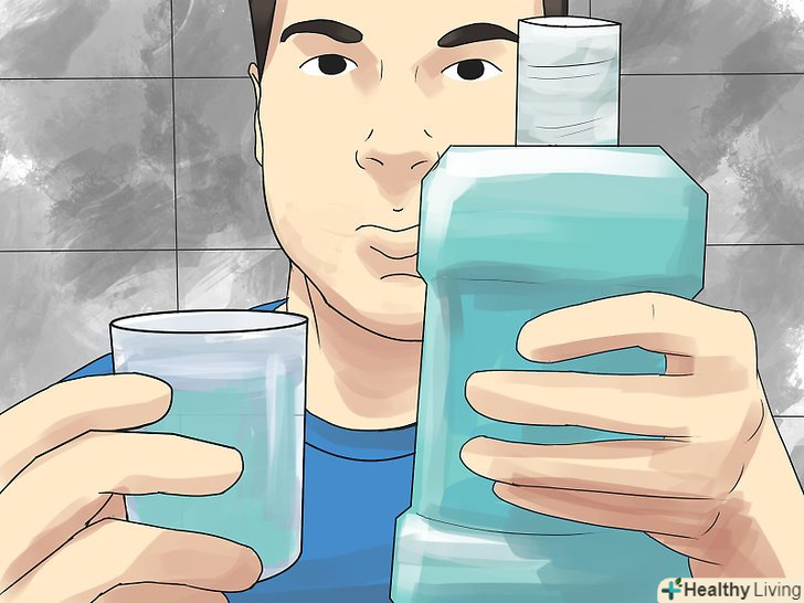 Використовуйте рідину для полоскання рота принаймні один раз на день.вона допомагає захистити зуби і вбиває бактерії, які можуть викликати неприємний запах з рота.[6] прополощіть рот протягом 30-60 секунд, а потім прополощіть горло 30-60 секунд. [7] полоскання горла допомагає дістати до задньої стінки глотки і внутрішньої частини щік - області рота, до яких важко дістати зубною щіткою або ниткою.- Фтористий зубний еліксир вбиває бактерії, а фторид допомагає запобігти карієсу.