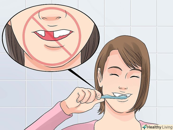 Використовуйте правильні засоби. Важливо вибрати відповідну зубну щітку. Користуйтеся щіткою відповідного розміру з м'якою щетиною, яка дозволяє легко дістатися до всіх куточків рота. Необхідно міняти зубну щітку раз в 3-4 місяці, або частіше, як тільки помітите, що щетина зношується.[7]- Використовуйте зубну пасту з фтором, схвалену професійними стоматологами.