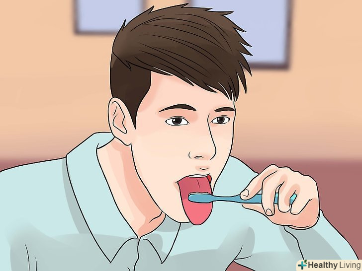 Чистіть язик зубною щіткою. найбільш поширений і легкий спосіб очистити мову полягає в тому, щоб використовувати для цього зубну щітку. Потріть мову від основи до кінчика-таким чином ви видалите наліт, уникнете зростання шкідливих бактерій і уникнете неприємного запаху з рота.[9]- При цьому не натискайте на щітку занадто сильно.