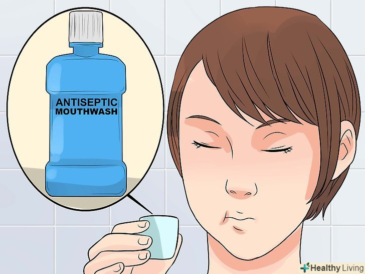 Використовуйте лікувальну рідину для полоскання рота.в аптеках є маса різних лікарських засобів для полоскання рота. Вони допомагають запобігти псуванню зубів і розвиток карієсу, усувають поганий запах з рота і оберігають від таких захворювань, як гінгівіт (запалення ясен). Косметичні засоби для полоскання рота менш ефективні - вони тимчасово усувають поганий запах з рота, але не ліквідують його причини і не допомагають підтримувати гігієну ротової порожнини.[16]- Вибирайте засіб, який схвалено професійними стоматологами.