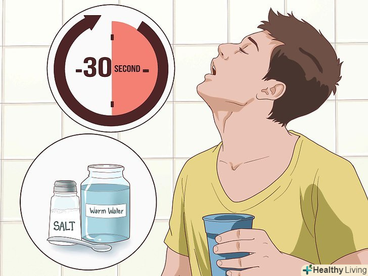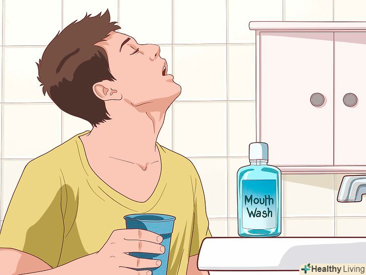 Полощіть рот.полоскання рота різними засобами сприяє заліковуванню ясен і допомагає зняти біль. Можна полоскати рот 3-4 рази на день.- Візьміть 120 мілілітрів (півсклянки) теплої води і розчиніть в ній ½ чайної ложки (4-5 грамів) морської солі. Потримайте розчин у роті у хворої ясна протягом 30-60 секунд. Потім сплюньте розчин і знову повторіть 2-3 рази. Після цього обполосніть рот теплою водою.[13] намагайтеся при цьому не ковтати солону воду.