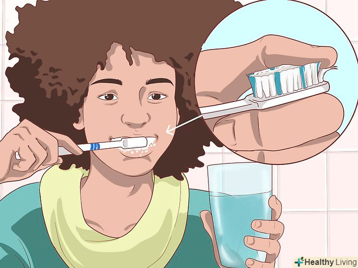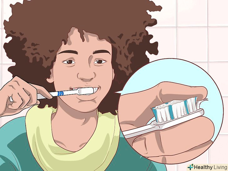 Чистіть зуби. не забувайте чистити зуби щонайменше двічі на день. Користуйтеся зубною щіткою з м'якою щетиною. Занадто жорстка щетина або зайвий тиск при чищенні зубів можуть пошкодити ясна і зуби. Чистіть зуби м'якими обережними рухами від ясен до кінця зуба.[31]- Крім того, зуби можна пошкодити старою щіткою. На нових щітках краю щетини закруглені, проте через кілька місяців вони стираються і стають гострими, що може завдати шкоди зубам.