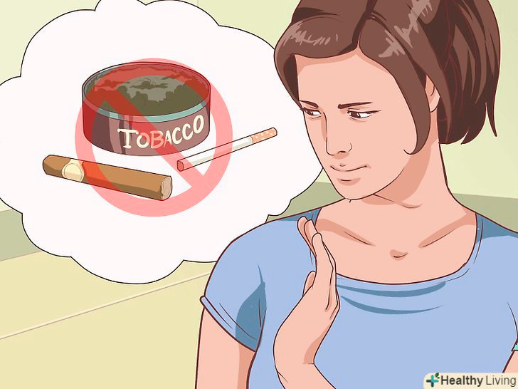 Не використовуйте тютюн.вироби з тютюну збільшують ризик захворювання ясен. Це відноситься до сигарет, сигар і жувального тютюну. Слід уникати тютюн в будь-якому вигляді. Якщо ви курите, слід відмовитися від цієї шкідливої звички, щоб зменшити небезпеку хвороби ясен.[34]- Крім того, куріння призводить до потемніння зубів і неприємного запаху з рота.[35]