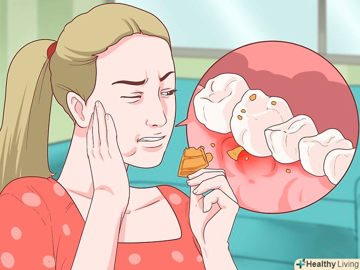 Виключіть подразники.іноді біль в яснах виникає через застряглих між зубами шматочків їжі. В цьому випадку видаліть залишки їжі і очистіть ділянки біля ясен за допомогою зубної нитки.[21]