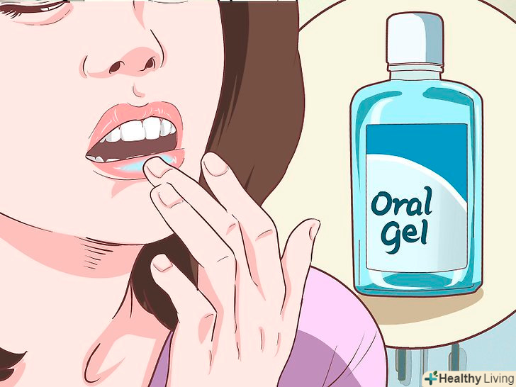Використовуйте гель для порожнини рота.антисептичні гелі для порожнини рота допомагають полегшити біль в яснах. Багато подібні гелі містять місцеві анестетики, які знімають біль. Можна також використовувати дитячий гель для прорізування зубів, наприклад Оражель, або гель з бензокаїном.[8]- При використанні гелю дотримуйтесь помірність і не перевищуйте рекомендовану дозу.